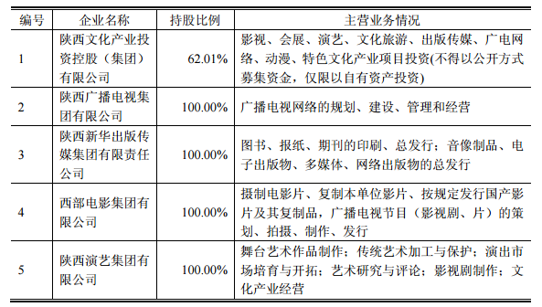 陕西省委宣传部控制的其他企业主营业务如下: